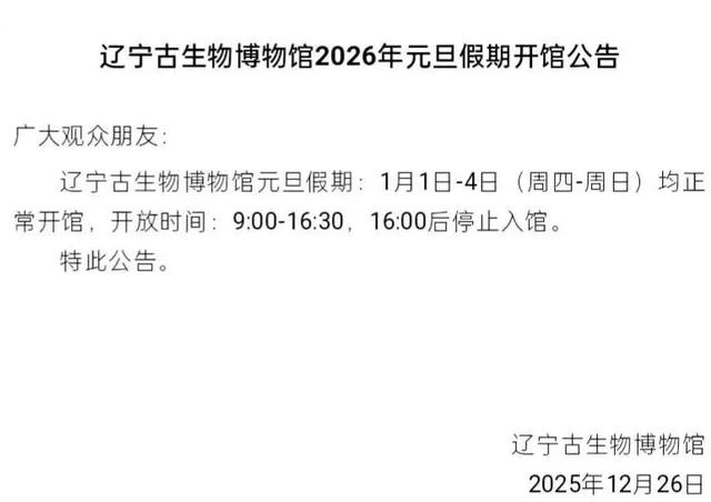 2026年元旦假期开放公告