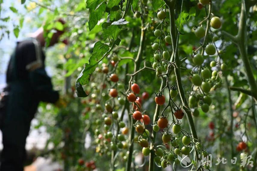 走进园区首批投产的日光温室,温暖如春。一垄垄番茄、黄瓜、彩椒长势喜人,红彤彤的草莓点缀其间,生机勃勃。工人们动作娴熟地采收、分拣、装箱,现场忙碌而有序。